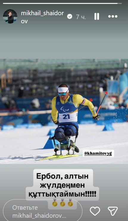 Михаил Шайдоров әлеуметтік желідегі парақшасында спортшыны жеңісімен құттықтап, тілегін жеткізді.