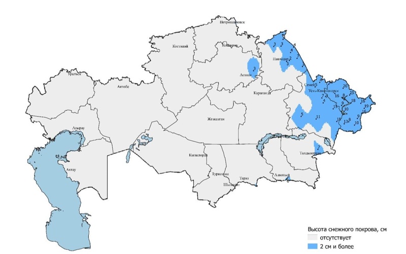 — Республиканың негізгі бөлігінде нормаға жуық, бірақ Қызылорда облысының көп бөлігінде, Ақтөбенің оңтүстік-шығысында, Қостанайдың оңтүстік-батысында және Ұлытаудың батысында нормадан аз түсуі мүмкін. Ал Павлодар, Солтүстік Қазақстанның шығыс бөлігі, Шығыс Қазақстанның солтүстігі мен орталығы, Абай облысының солтүстік аймақтары және Ақмола мен Қарағанды облыстарының солтүстік-шығыс бөлігінде жауын-шашын мөлшері нормадан көп болады деп күтіледі. Таулы аймақтарда да қар молырақ түсуі ықтимал, — делінген құжатта.
