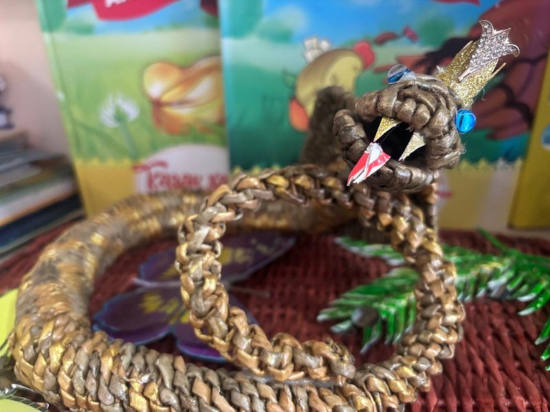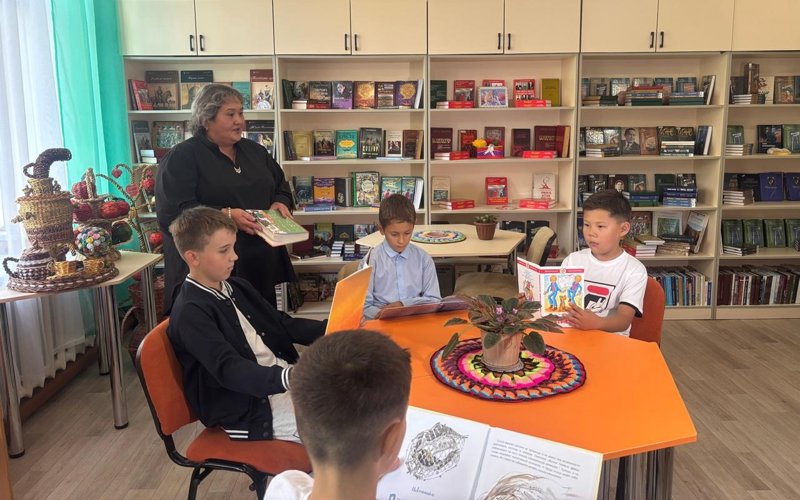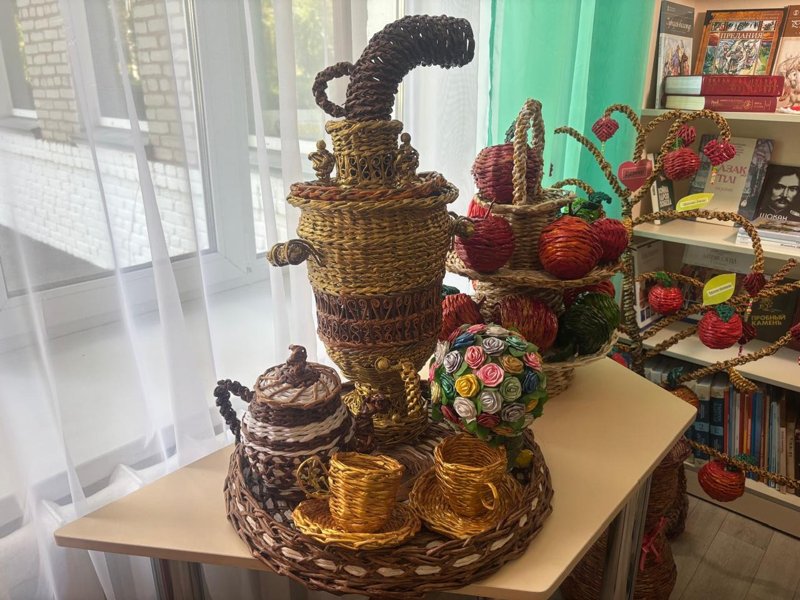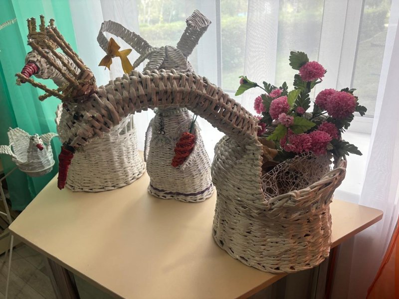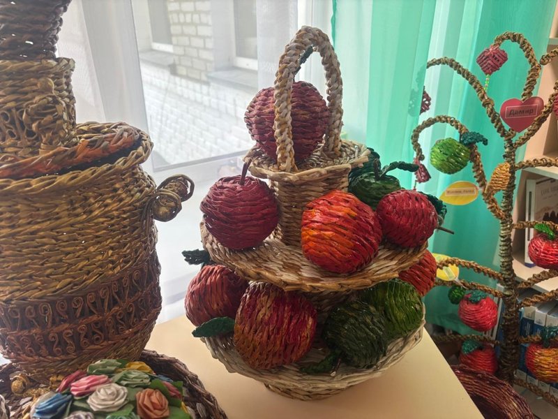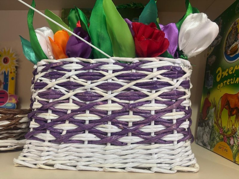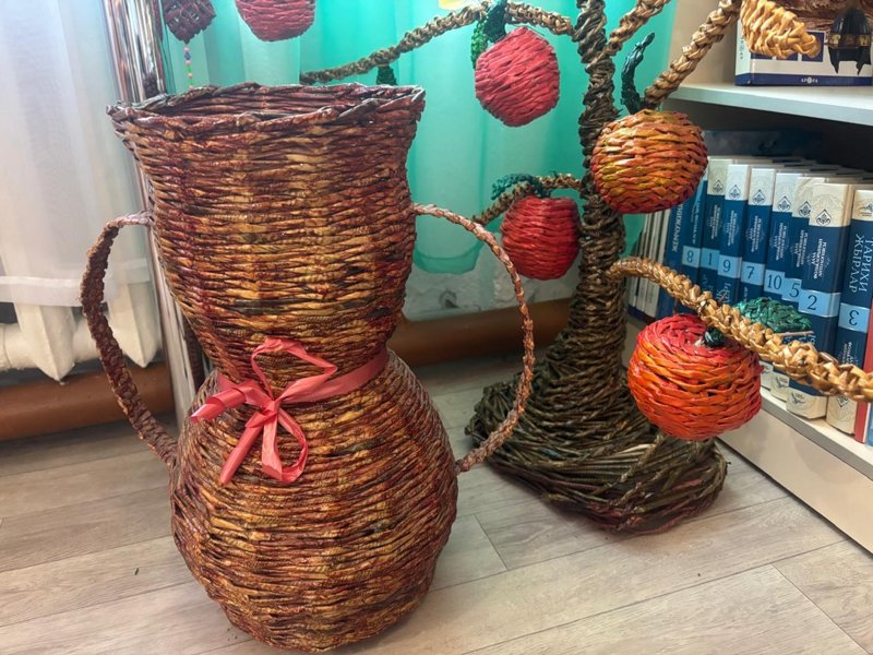 Сондықтан да болар, сабақтан үзілісте балалар кітапханадан табылады. Бұл жерде тоқылған ыдыс-аяқ та, түрлі өсімдік-құстар да, ертегі кейіпкерлері де бар.