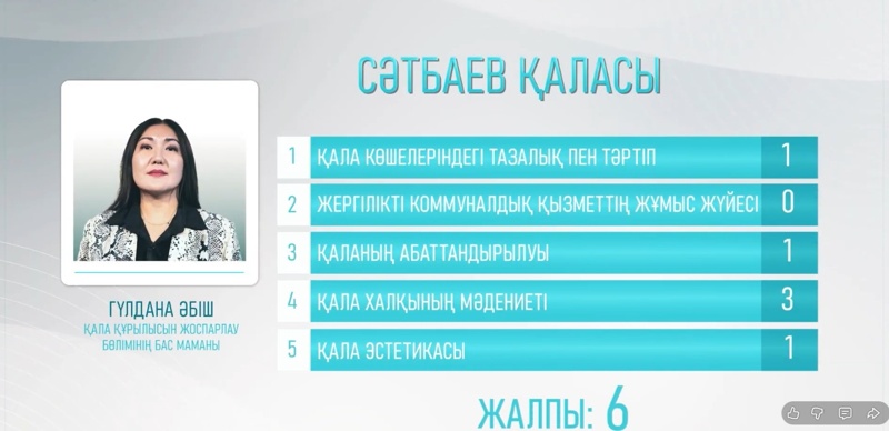 — Тазалық деңгейі көңіл көншітпейді. Жасыл желек отырғызылғанымен, оның сапасы төмен. Жердің құнарлылығын алдын ала зерттеу қажет. Сонымен қатар қала эстетикасына да назар аудару керек, — деді қала құрылысын жоспарлау бөлімінің бас маманы Гүлдана Әбіш.
