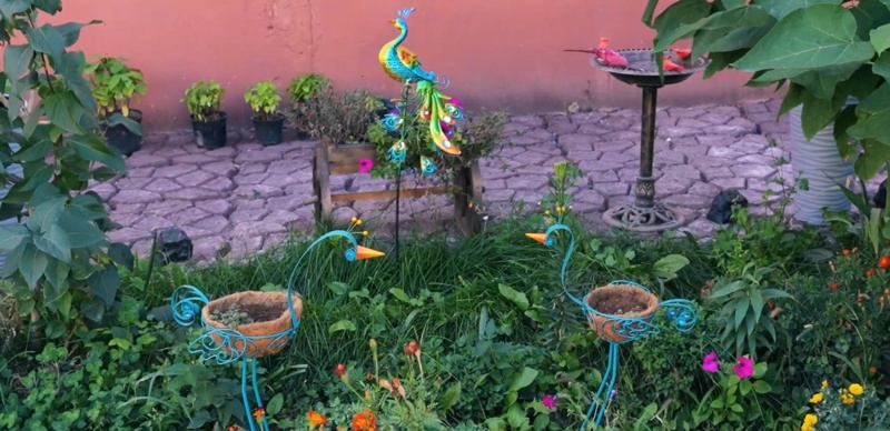 Ауладағы жануарлар мен құстардың мүсіндері ерекше әсер қалдырады. Олар ағаштан ойып жасалған.
