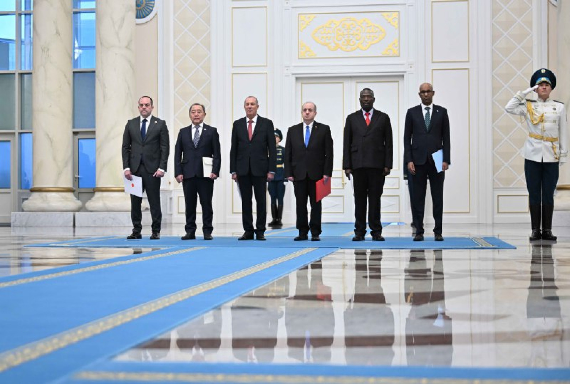 Израиль мемлекетінің елшісі Йоав Быстрицки; Қырғыз Республикасының елшісі Құдайберген Базарбаев; Куба Республикасының елшісі Альфредо Федел Ниевес Портуондо; Ливан Республикасының елшісі Джордж Абу Зейд; Зимбабве Республикасының елшісі Марк Грей Маронгве; Сомали Федеративтік Республикасының елшісі Фатхудин Али Мохамед тапсырды.