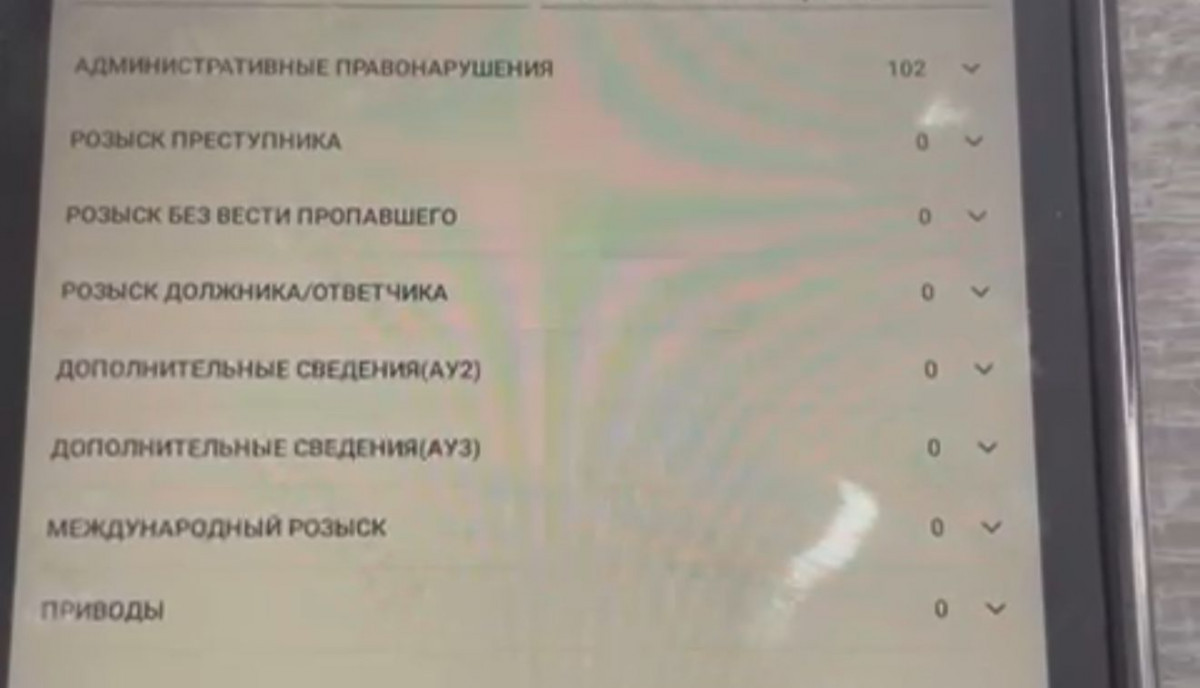 Ақпараттық базалар арқылы тексеру кезінде жүргізушінің жол қозғалысы саласында 102 әкімшілік құқық бұзушылық жасағаны анықталды.
