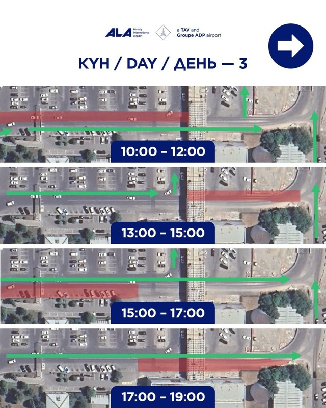 Алматы әуежайының мәліметінше, аталған жұмыстар 4 күн жалғасады және жол инфрақұрылымын жақсарту мақсатында жүзеге асырылады.