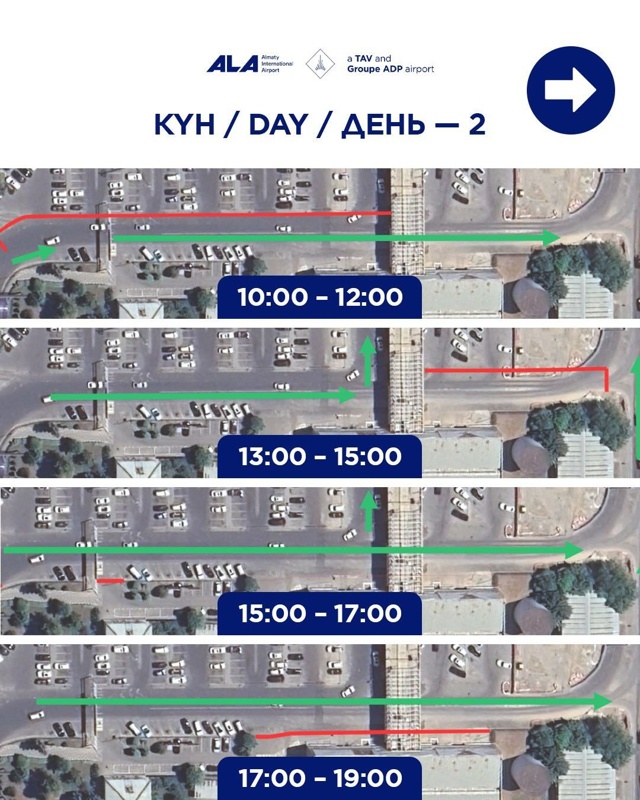 - Әуежай аумағында қатынау ыңғайлы болуы үшін жол инфрақұрылымы жаңартылып жатыр. Автокөліктерге кіру және шығу қозғалысы толық қамтамасыз етіледі. Уақытша қолайсыздықтар үшін кешірім сұраймыз, – деп хабарлады әуе айлағының баспасөз қызметі.