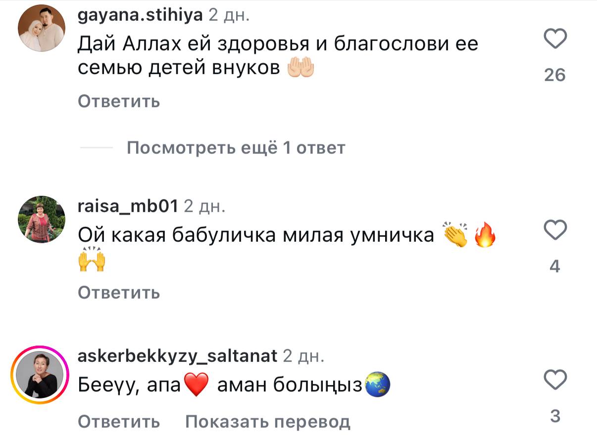 Ранее видео с 90-летней бабушкой, исполняющей казахский народный танец под кюй «Пір Дастан», стало настоящим хитом в соцсетях. Пользователи сети не сдерживают восхищения, называя танец бабушки «шедевром» и отмечая ее изящество и профессионализм.