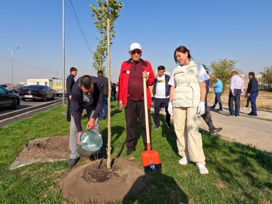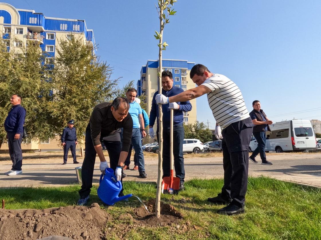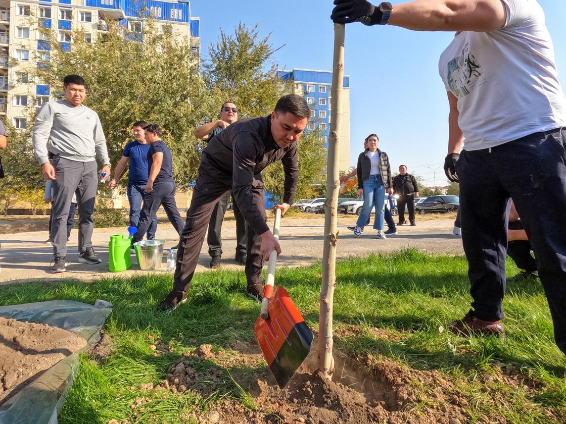 Аким Шымкента принял участие в посадке деревьев вместе с жителями