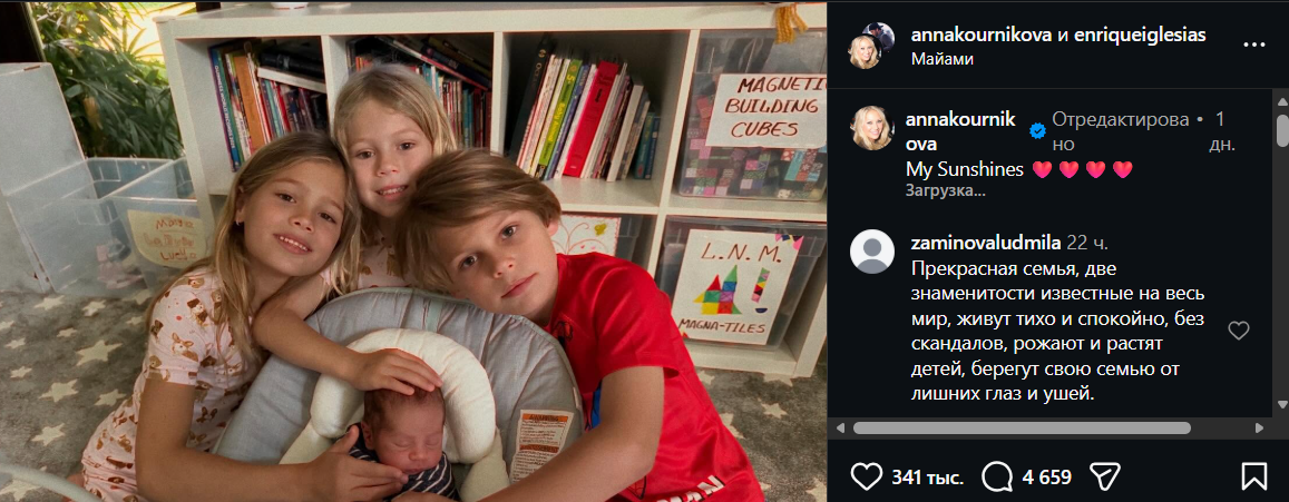 Анна Курникова показала своих четверых детей с Энрике Иглесиасом