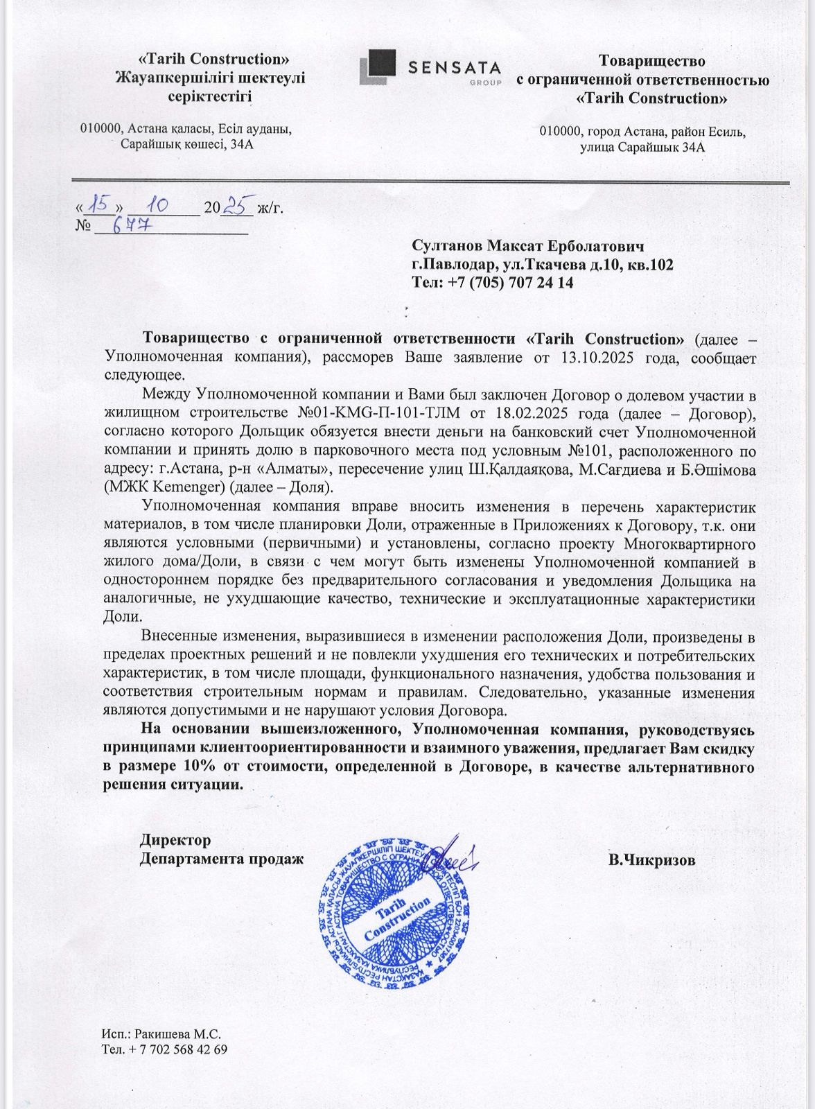 Напомним, в октябре 2023 года строительная компания «Sensata» оказалась в центре скандала, решив начать стройку 17 и 22-этажных домов между двумя жилыми комплексами Central park и «Изумруд». Тогда жители вышли на мирный протест, с просьбой уменьшить этажность домов. После этого представильница компании Светлана Сабихан встретилась с жильцами и пообещала, то примет во внимание просьбы жителей.