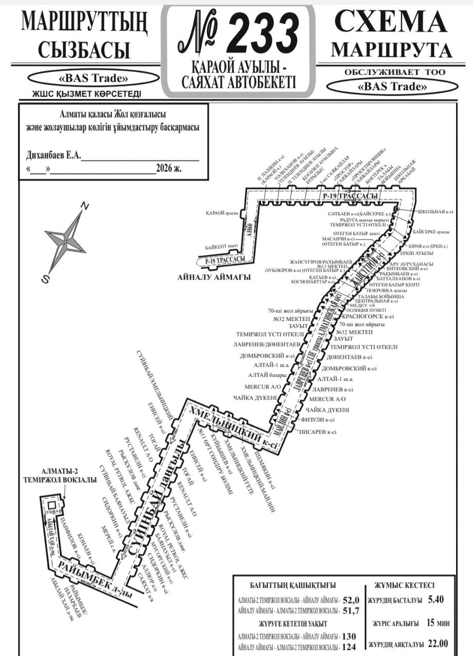 Автобус №233 обновляет схему движения в Алматы