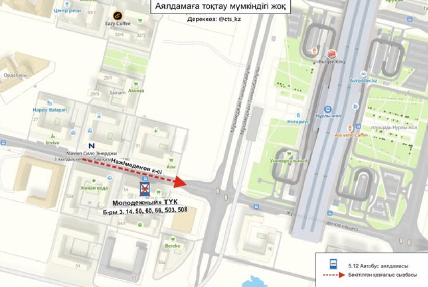 В Астане временно изменена схема движения общественного транспорта из-за перекрытия проездов к ряду остановочных пунктов. Ограничения затронули несколько популярных маршрутов, что может повлиять на привычные маршруты горожан, передает Liter.kz.