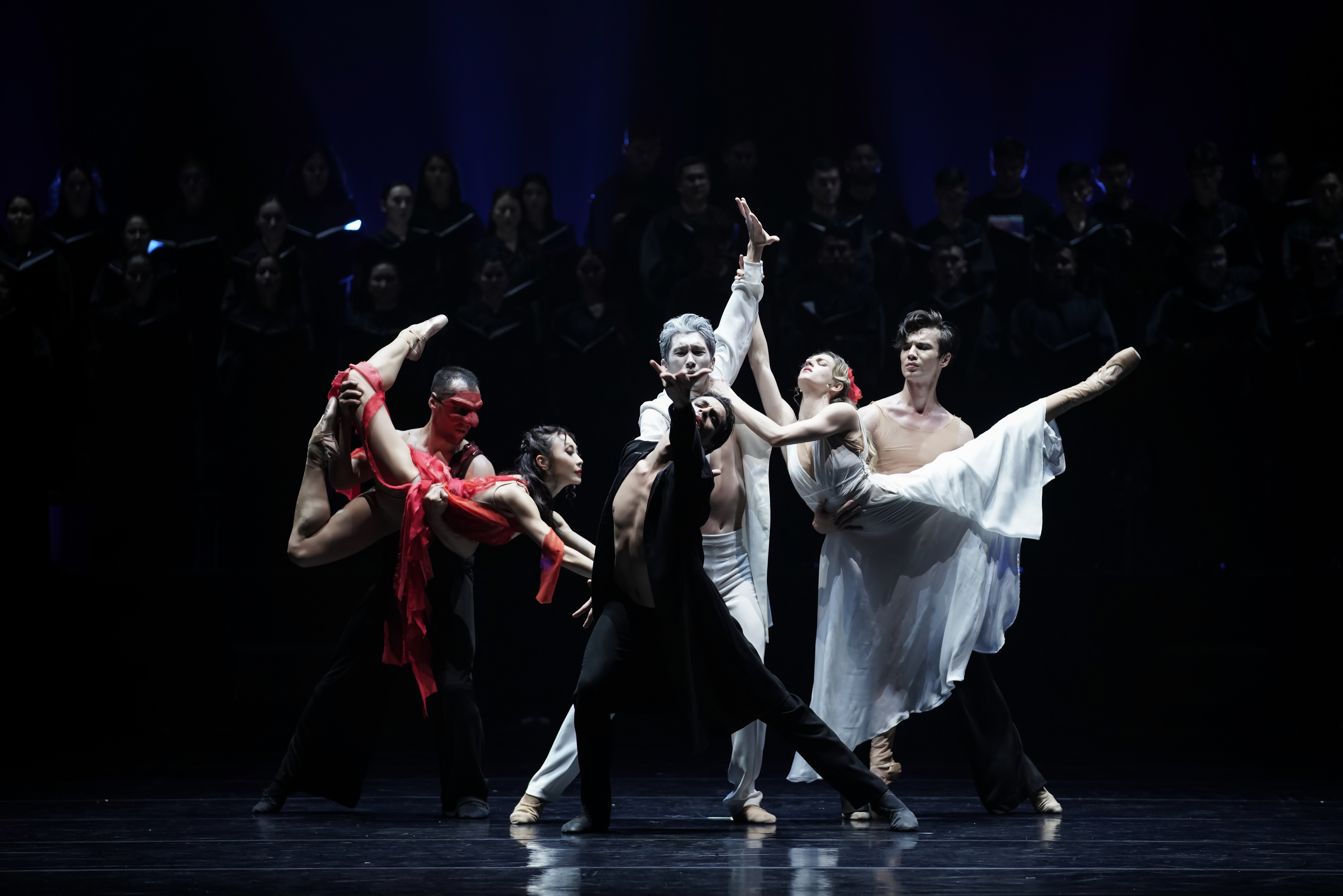 Балет "Carmina Burana" в репертуаре театра представляет собой масштабное синтетическое произведение, объединяющее музыку, хореографию, вокал и световую драматургию. Постановка раскрывает философскую тему круговорота жизни и утверждает идею торжества любви.