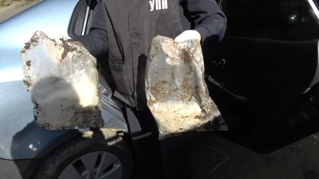 Во время обыска автомобиля подозреваемого были изъяты два полимерных пакета с порошкообразным веществом белого цвета.