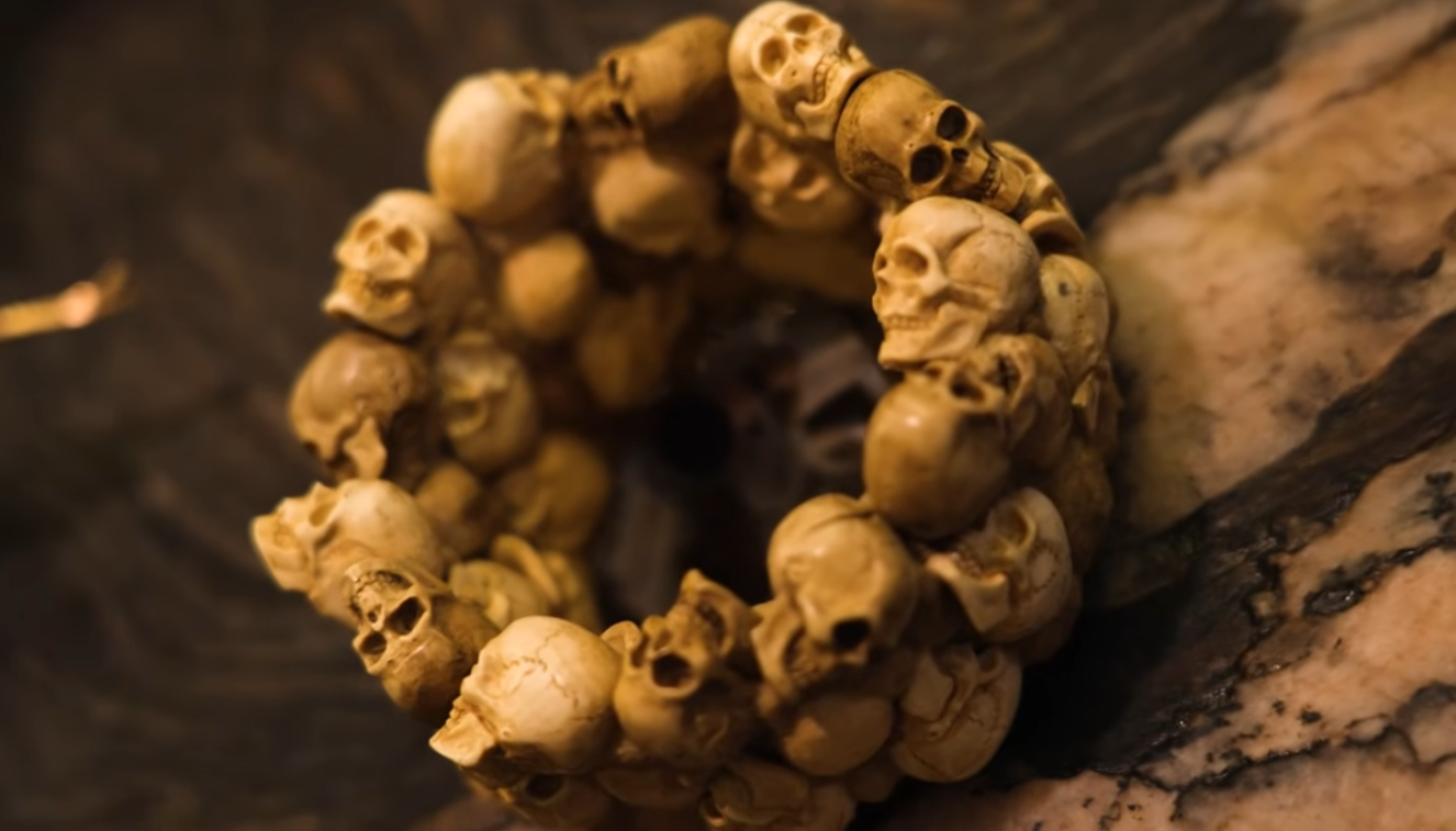 Другая композиция интересна тем, что включает в себя копию ключа от главной мусульманской святыни – Каабы в Мекке. В нижней части находится круг из черепов, сделанных из бивня мамонта. Вся же композиция символизируют мироздание или загробные миры.