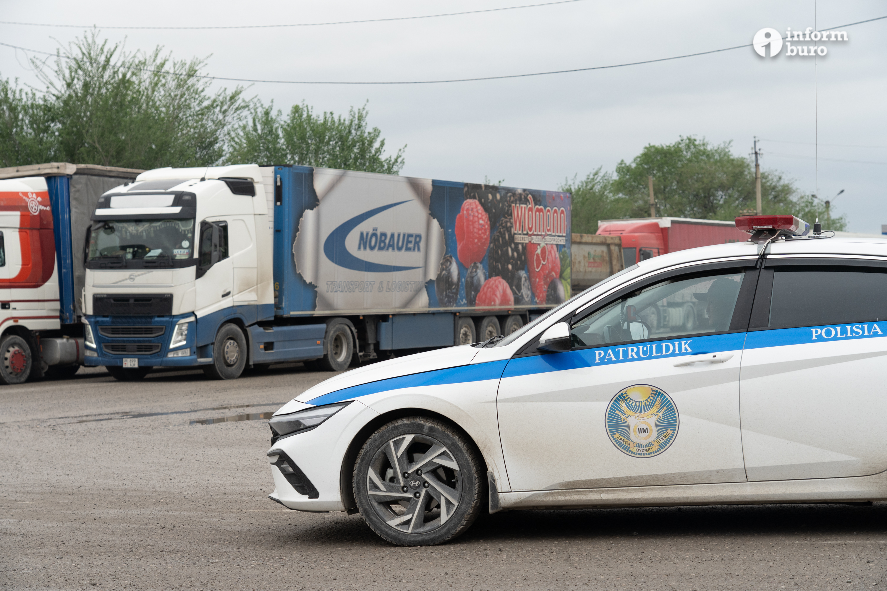 Сотрудники дорожной полиции регулярно несут дежурство на трассе республиканского значения, ведь пробки из большегрузов растягиваются на километры. Ранним субботним утром журналисты Informburo.kz насчитали в очереди свыше 350 фур. Порой сотрудникам правоохранительных органов приходится гасить вспыхивающие конфликты между водителями.