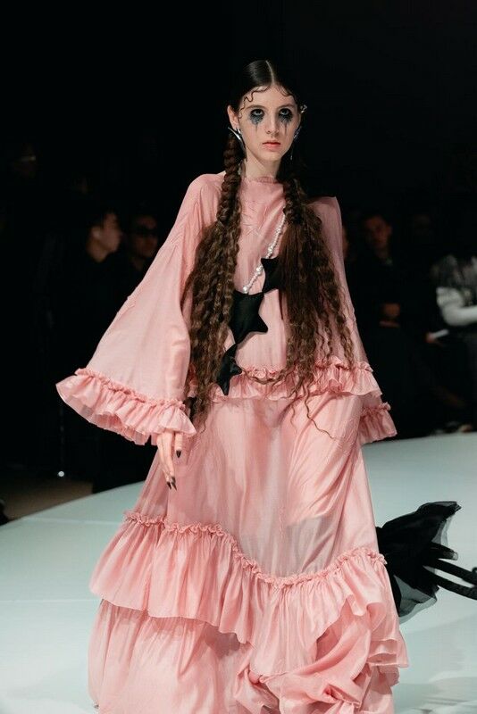 В коллекции много черного цвета - это земля, а мощные корневища в рисунке - это система, которая помогает степнякам выжить в суровых условиях. По форме и дизайну у них платья-корни, платья-тьма и платья-сорняки - они символизируют силу, из которой возрастают жизнь и свет. В рисунке моделей одежды присутствуют мотивы чертополоха, верблюжьей колючки и бессмертника, ведь во всех этих неприметных растениях много силы, много колючего и цепкого, они гнутся, но не сгибаются.