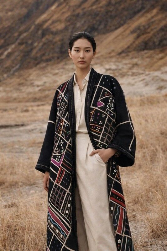 - Могу предложить одеваться, как мои друзья из сферы архитектуры и дизайна: они любят носить чапан, белую футболку и джинсы. Или, например, минималистично: черный чапан с бежевым низом - вообще шикарно! В теплое время, конечно, чапаны у них из льна, - поделилась Акмарал Жараскызы.