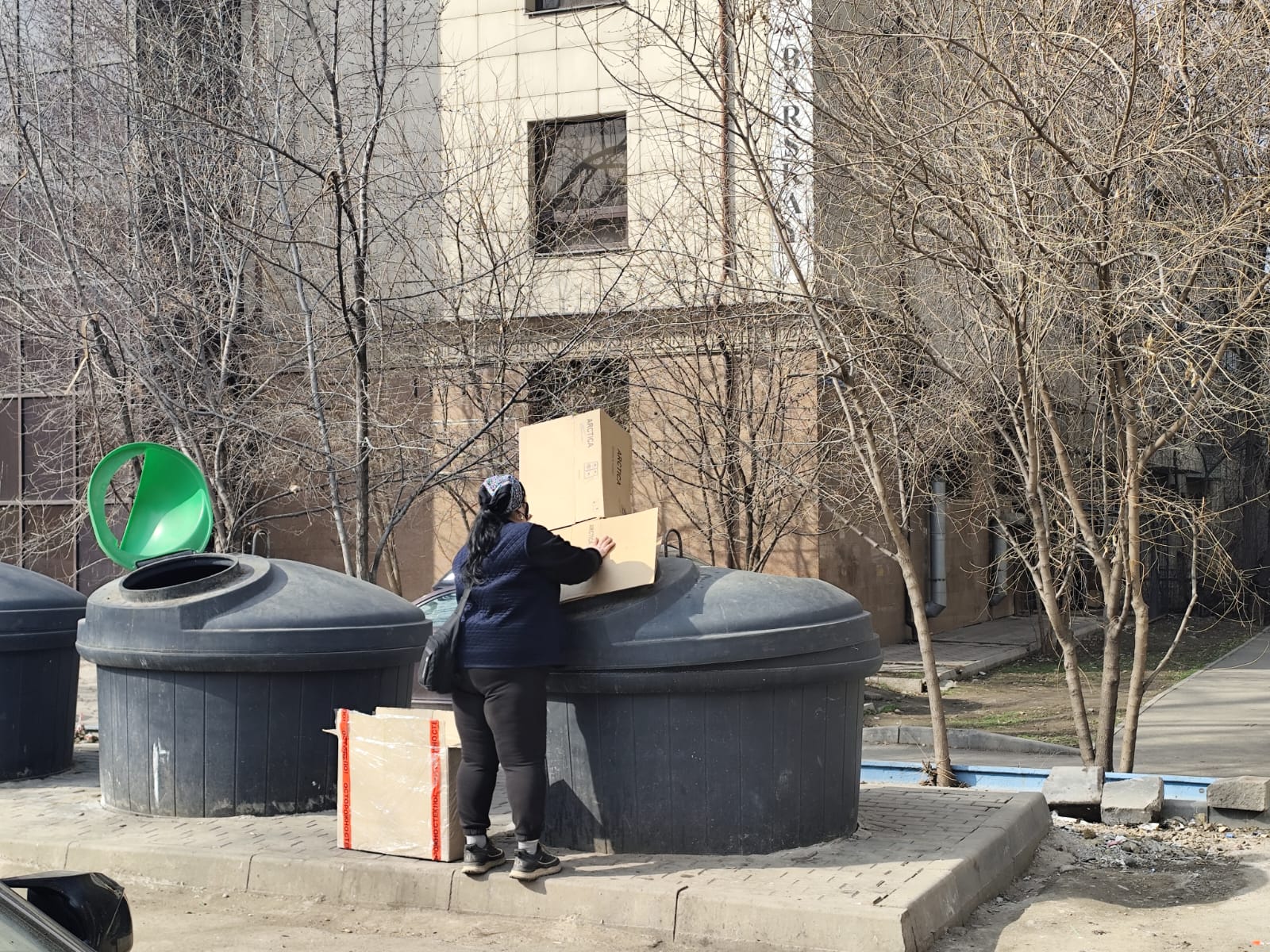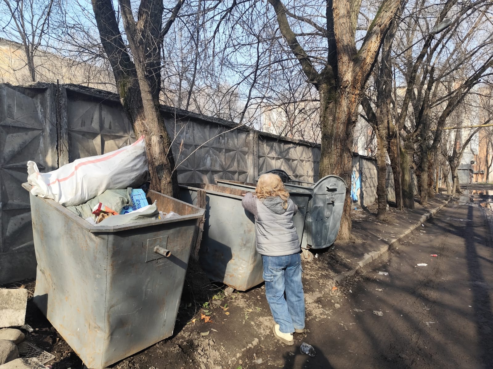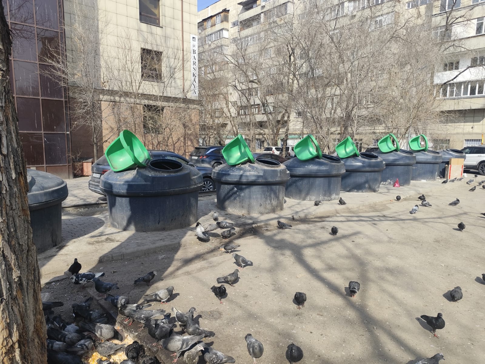 Усугубляют ситуацию маргинальные личности, добывающие из нутра контейнеров жестяные банки. Весь параллельно вытащенный мусор они оставляют на земле. По словам жителей, грешат выбросом отходов в неположенных местах также работники столовых и кафе. Они тоже бросают пакеты и коробки с остатками еды возле контейнеров, устраивая пиры с бесбармаком, пловом и салатами для голубей и бездомных собак. Кстати, птицы слетаются сюда целыми стаями, грязные и со слипшимися перьями, вытаптывают все газоны в округе.