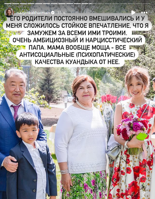 “Очень амбициозный и нарциссический папа, а мама вообще моща, все асоциальные (психопатические) качества Куандыка от нее”.