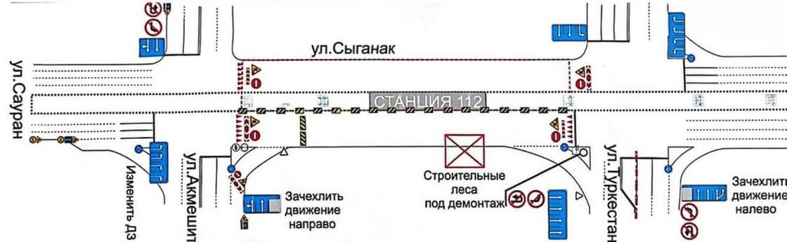 "23 октября с 12:00 по 25 октября 00:00 на участке крытого пешеходного перехода LRT над улицей Сыганак (от здания МБЦ "Абу Даби Плаза" до здания Станции №112), будут проводиться работы по демонтажу строительных лесов и вывозу материалов", - говорится в сообщении.