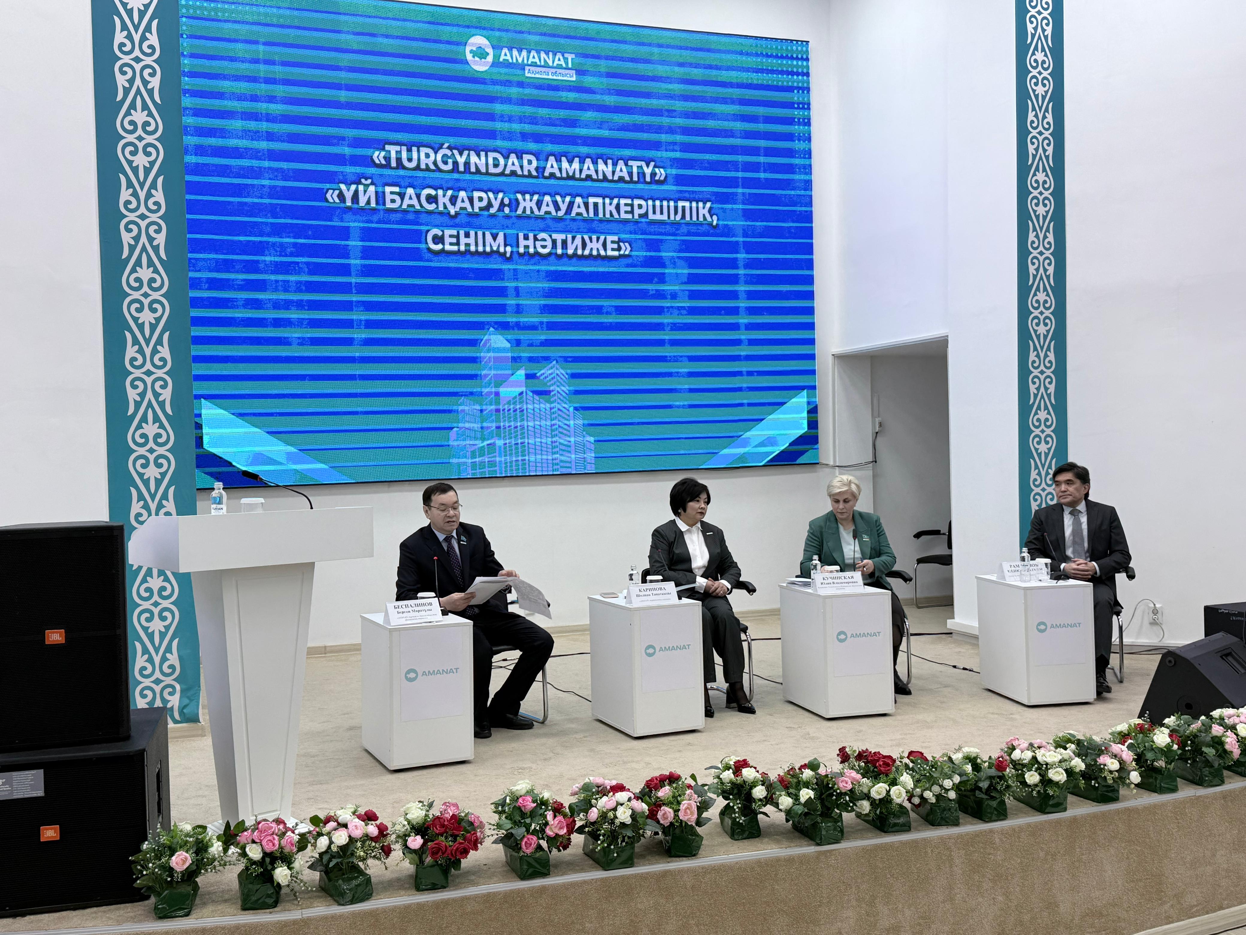 В рамках масштабирования инициативы по всей стране проходят обучающие семинар-форумы для председателей ОСИ и КСК, депутатов маслихатов и самих жителей. Очередная диалоговая площадка “Управление домом: ответственность, доверие, результат” состоялась в городе Кокшетау.