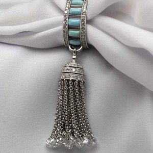Кольцо из белого золота 750-й пробы весом 8,8 грамма с фирменным клеймом YANA. Украшение инкрустировано 14 бирюзами общим весом 5,6 карата и 170 бриллиантами общим весом 2,4 карата. Масса драгоценного металла составляет 7,2 грамма.