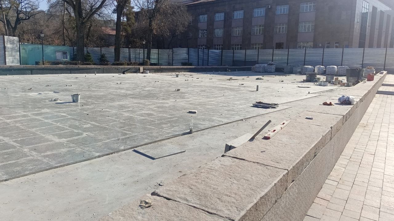 Корреспондент Orda.kz несколько дней назад посетил сквер имени Мусрепова и увидел, что объект брошен, никакие работы не ведутся, ни одного рабочего нет на месте.
