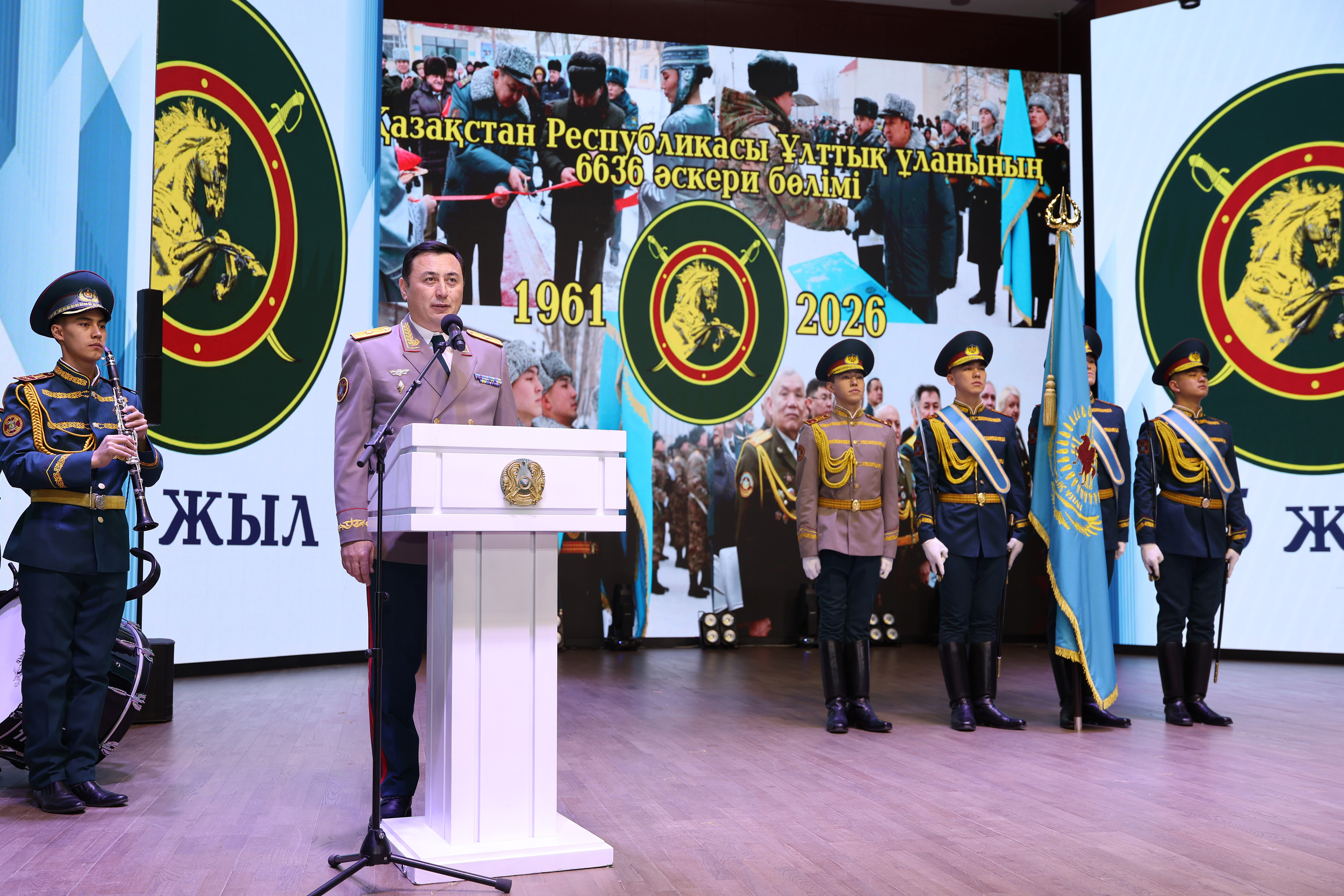 В ходе торжественного вечера заместитель министра внутренних дел – главнокомандующий Национальной гвардией генерал-майор Ансаган Балтабеков выступил с поздравительной речью и наградил ряд военнослужащих.