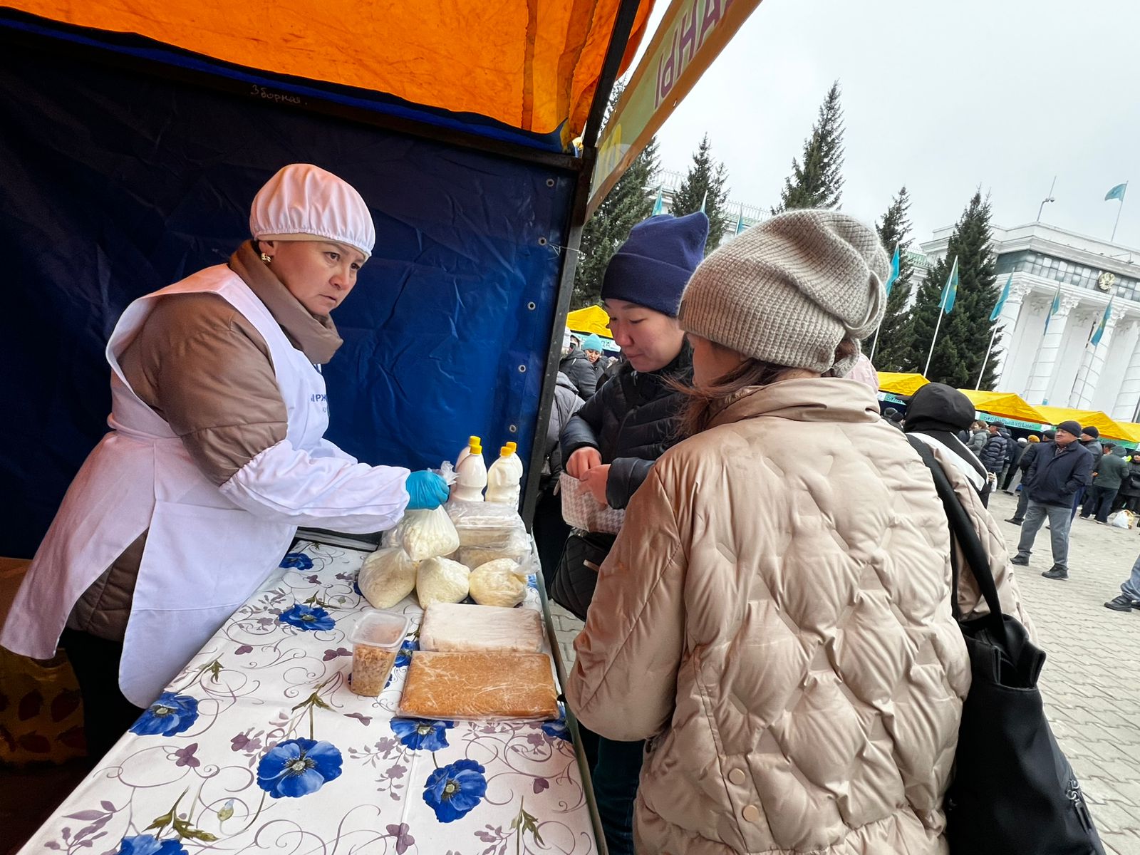 «Мы продавали говядину за 3 тыс за килограмм. Сразу собралась большая очередь — раскупили мгновенно», — рассказал участник ярмарки Ерханат Турлыбекулы.