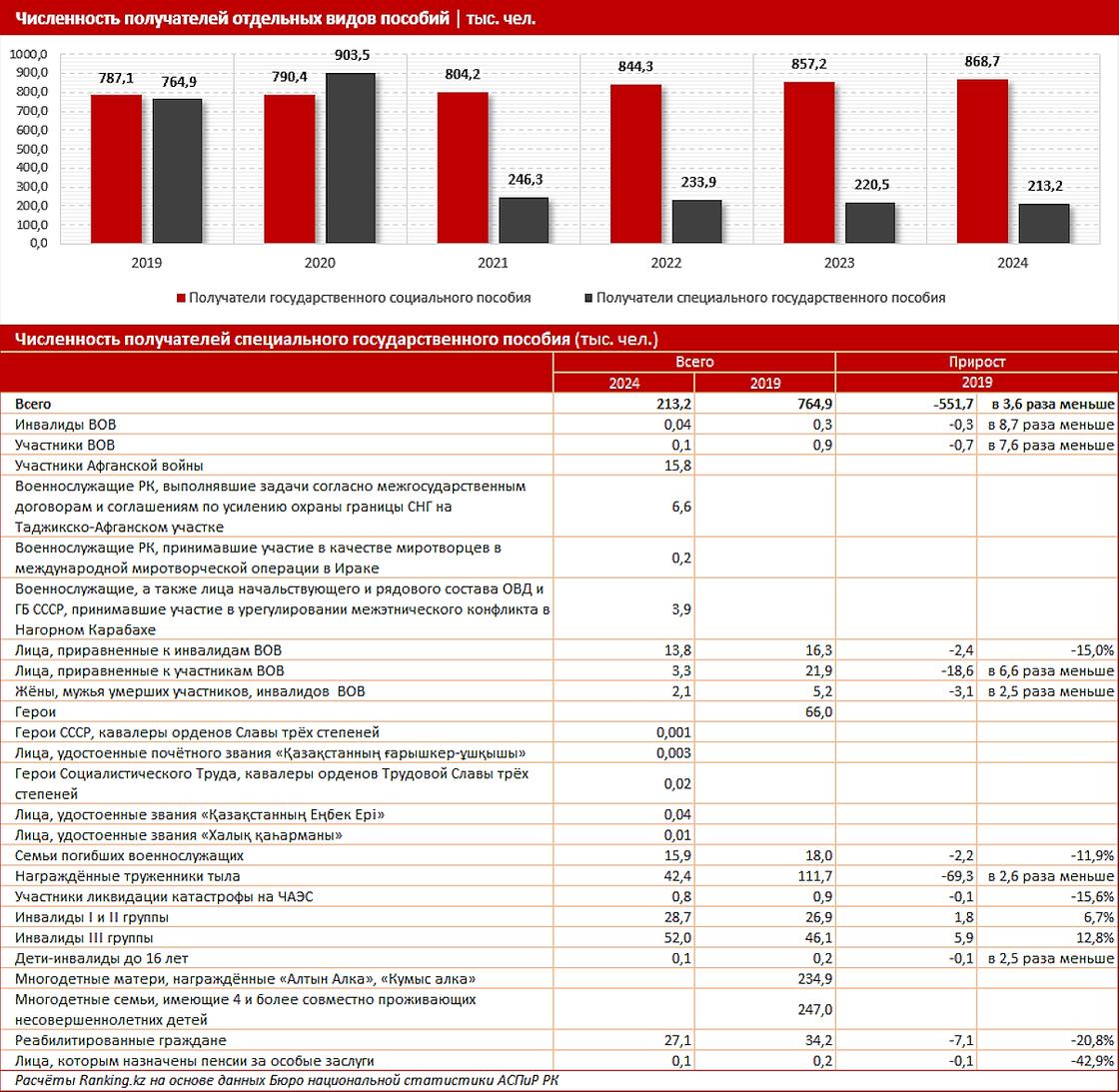Численность получателей пособий в Казахстане. Инфографика: ranking.kz