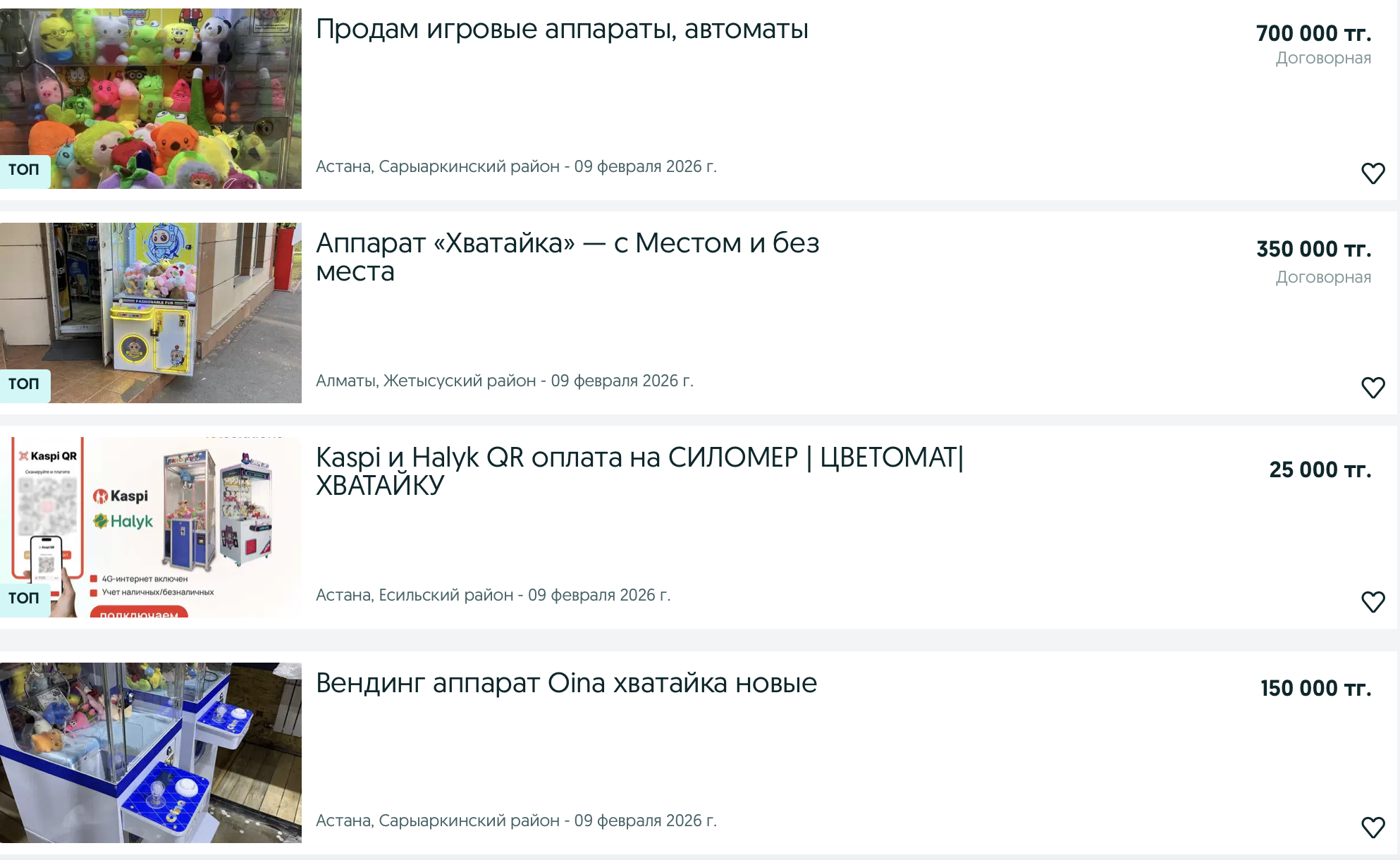 Стоимость установки одного автомата варьируется от 150 до 700 тысяч тенге. В комплект входит в среднем 30–50 игрушек. По данным продавцов оборудования, до 90% оплат сегодня проходят безналично — через QR-коды.