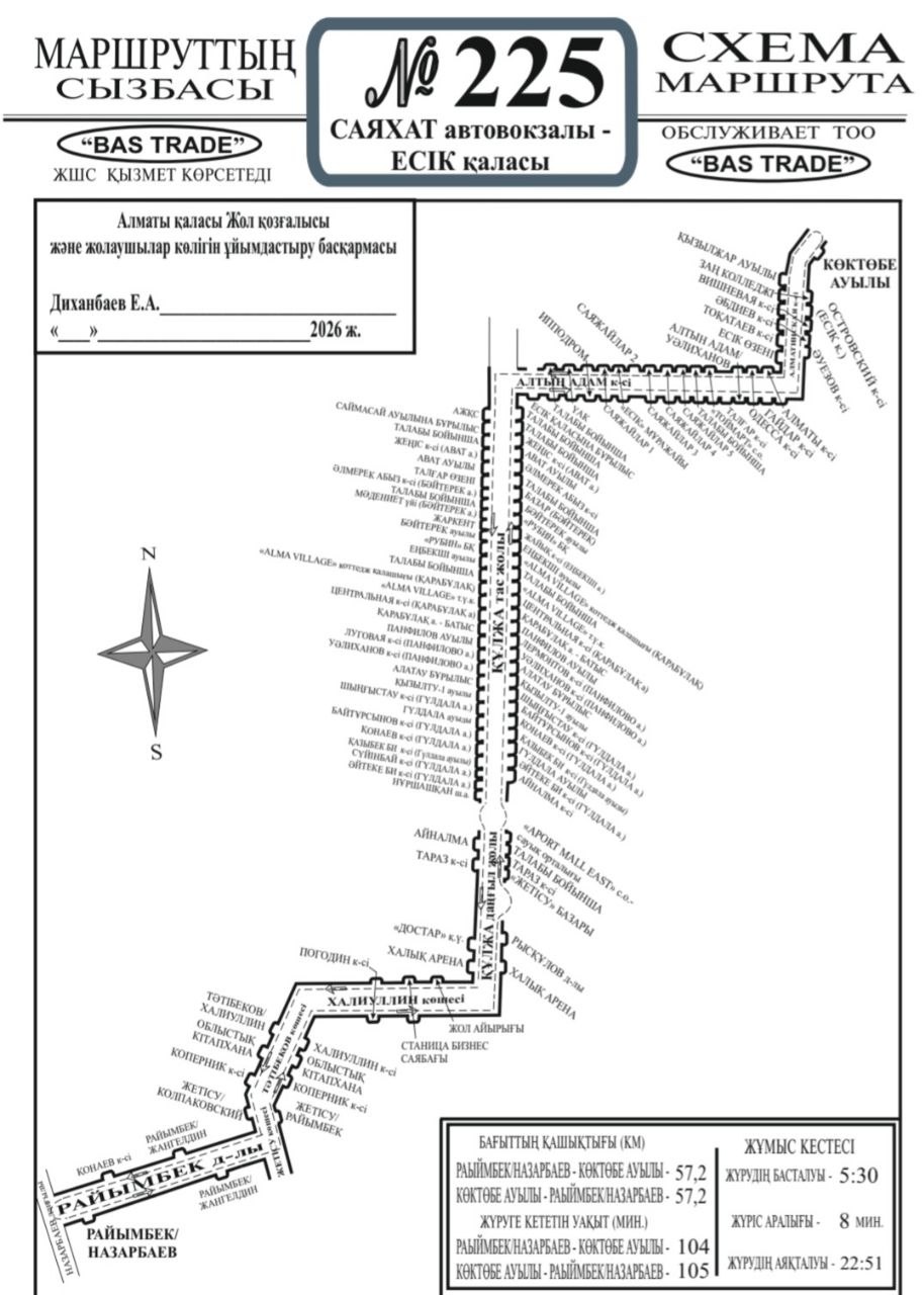 Контрольную точку маршрута №225 перенесли на остановочный пункт "Көктөбе ауылы".