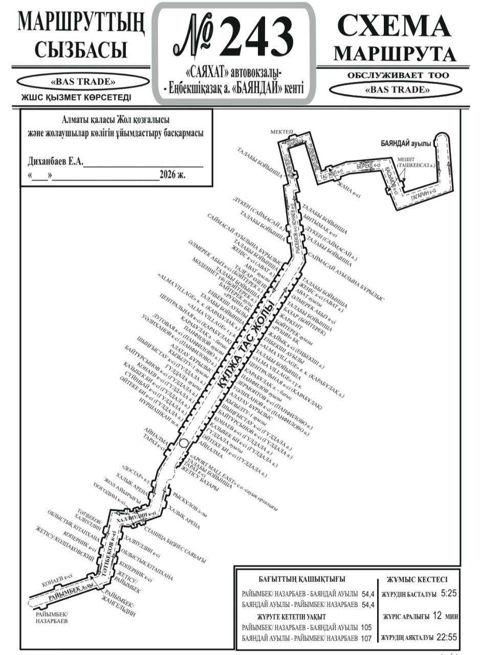 Схему движения маршрута №243 изменили в связи с продлением в посёлке Амангельды.