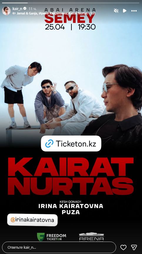 Выступление состоится 25 апреля на площадке “Абай Арена”. Начало концерта запланировано на 19:30. Организаторы обещают насыщенную программу и участие специальных гостей – PUZA и группы “Ирина Кайратовна”.