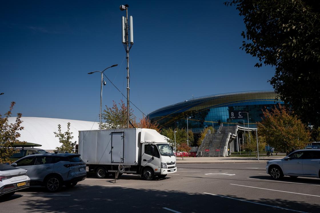 Перед зданием оператор установил мобильные базовые станции. Это технологическое решение применяется как раз, когда нужно временное усиление связи: оборудование привозят на специальном фургоне, собирают, а после мероприятия демонтируют и увозят. На ATP 250 стоит две мобильных базовых станции.