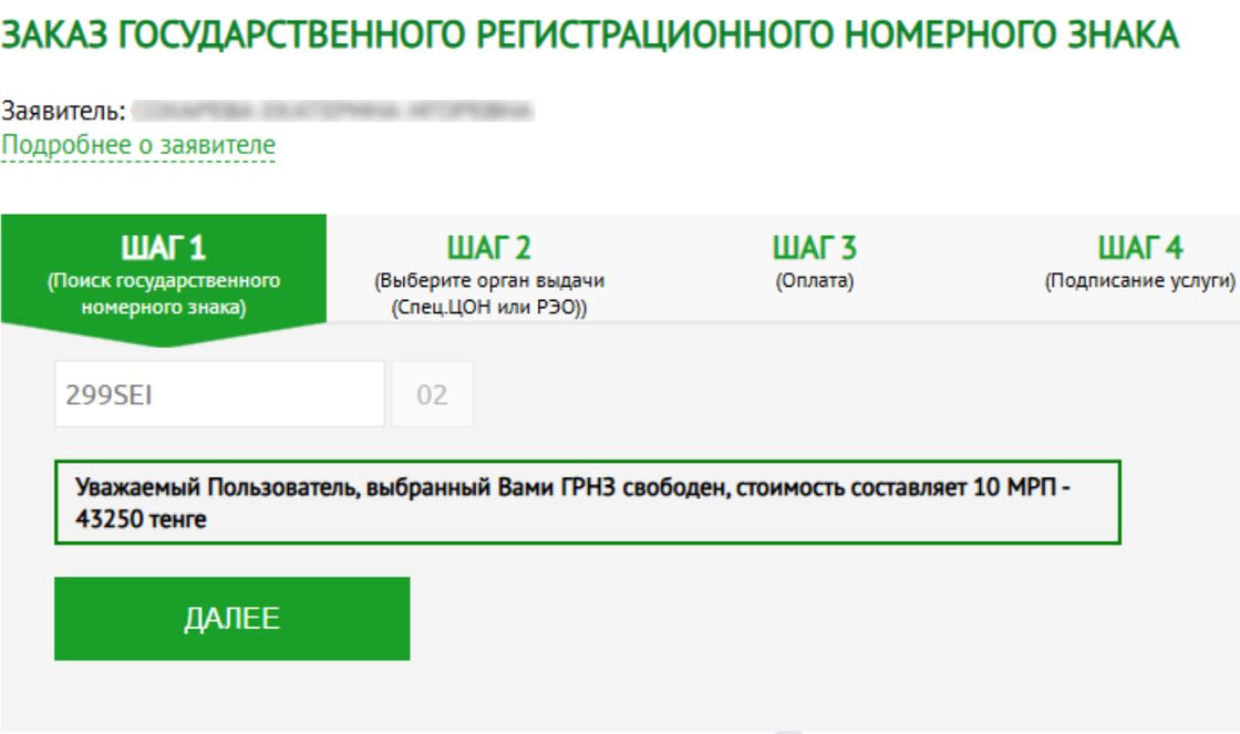 Заказ номера на авто с собственной комбинацией. Скриншот: NUR.KZ