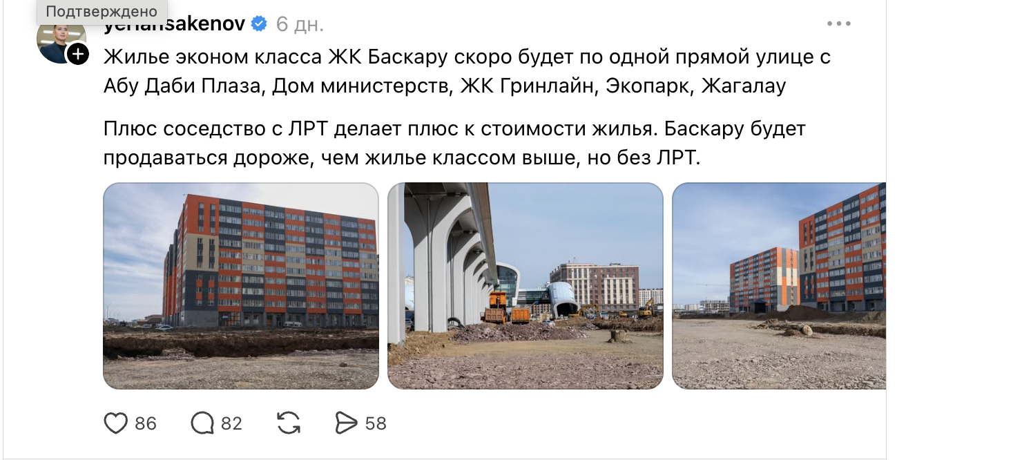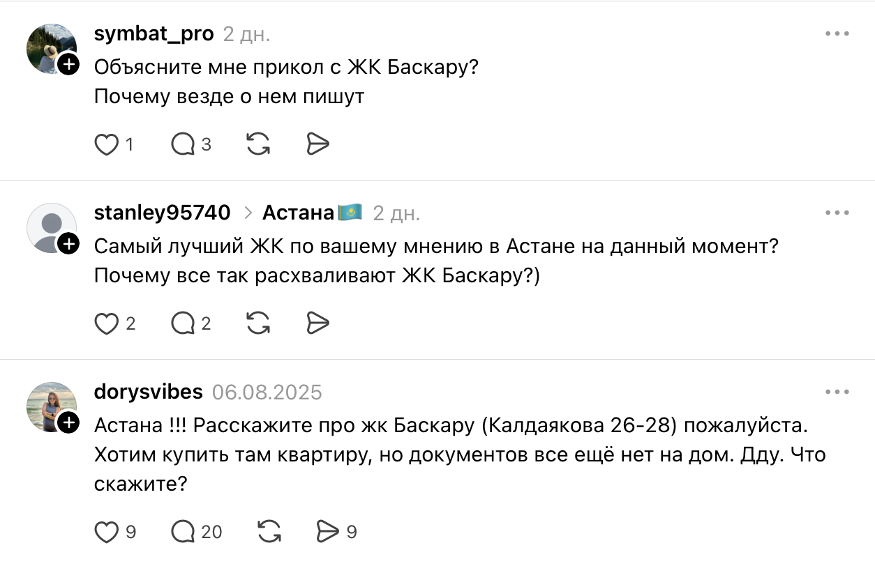 Жители Астаны с иронией называют ЖК «Баскару» «самым топовым домом» города. Но не все понимают, в чем шутка, пользователи Threds просят «пояснительную бригаду».