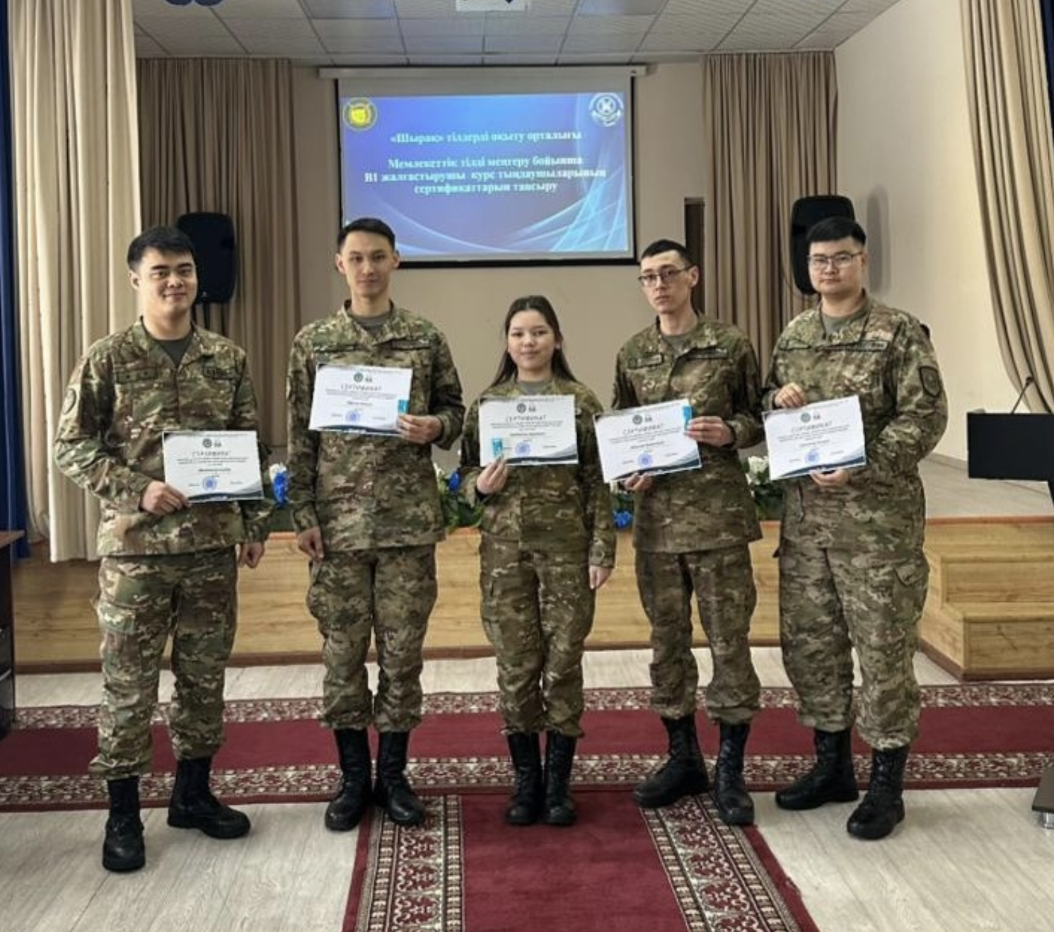 В воинской части 6505 Национальной гвардии Республики Казахстан состоялась церемония вручения сертификатов военнослужащим, подтвердившим уровень владения казахским языком на уровне B1, передает Liter.kz.