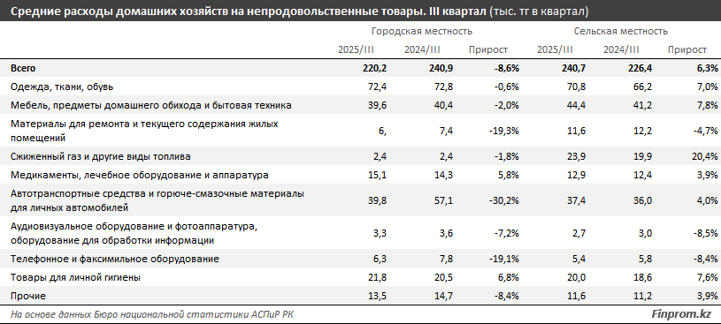 Карагандинская область – 50,6%; Северо-Казахстанская – 51,4%; Акмолинская – 51,8%.У жителей городов сильнее всего увеличились расходы на: