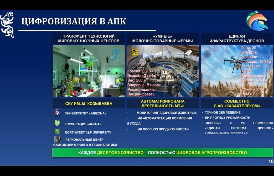 По его словам, приоритет цифровизации агропромышленного комплекса позволит Северо-Казахстанской области одновременно повышать эффективность хозяйств и укреплять продовольственную безопасность страны.