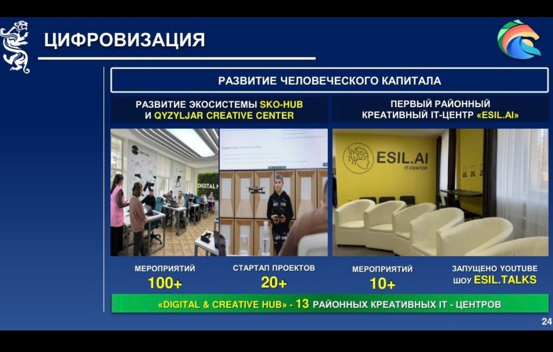 "Регион внедрил коллаборацию Айти и креатива на площадке Кызылжар креатив центр. Объединяя креативность и цифровизацию, создана среда для талантливой молодежи и инновационных идей", — подчеркнул Гауез Нурмухамбетов.