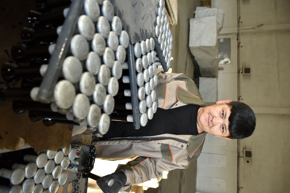 – Изоляторы, конечно, тяжелые, но можно научиться правильно их перемещать, минимально напрягаясь. Как и на любом производстве, случается всякое. Изолятор ни разу не роняла, нет. Поскольку работаем с закаленным стеклом, то бывали случаи, когда оно в руках лопалось. Это естественный процесс, происходящий из-за неравномерности распределения напряжения внутри стеклодетали. Но поскольку такого исхода не ожидаешь, всякий раз вздрагиваешь, – улыбаясь, рассказывает о тонкостях профессии армировщик электро-керамических изделий Светлана Корепанова.