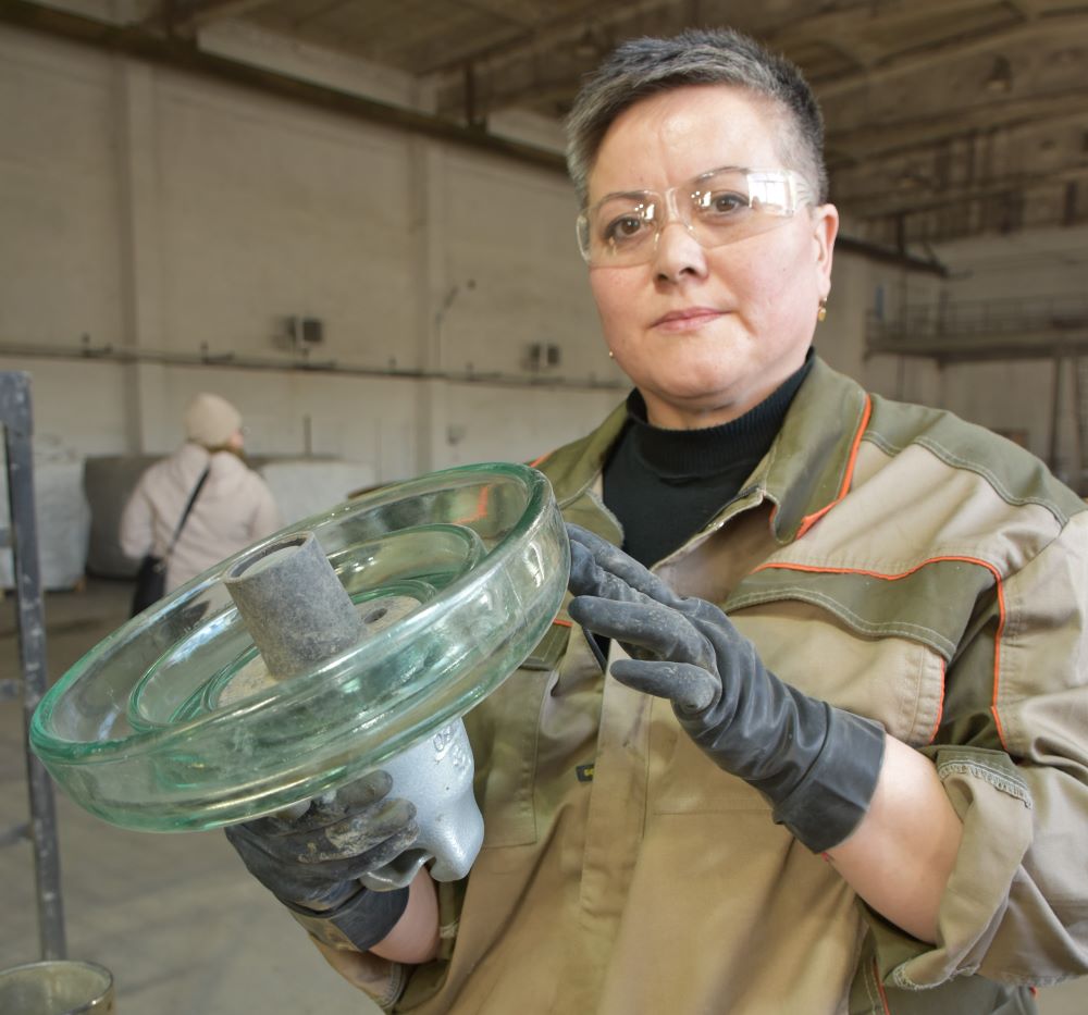 ...В одном из заводских цехов Казахстанского изоляторного можно наблюдать, как с десяток женщин усердно натирают высоковольтные изоляторы, убирая цементные остатки из соединений между «шапкой» и стеклодеталью, а также возле стержня. Изделие должно быть кристально чистым. Такие требования предписаны ГОСТом.
