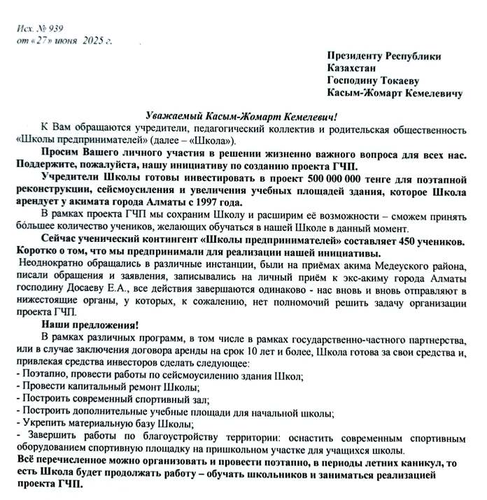 Кроме того, Бурабаева объяснила, что в ноябре 2024 года провели тендер, и уже в декабре школу фактически попытались выселить без предоставления ясной альтернативы.