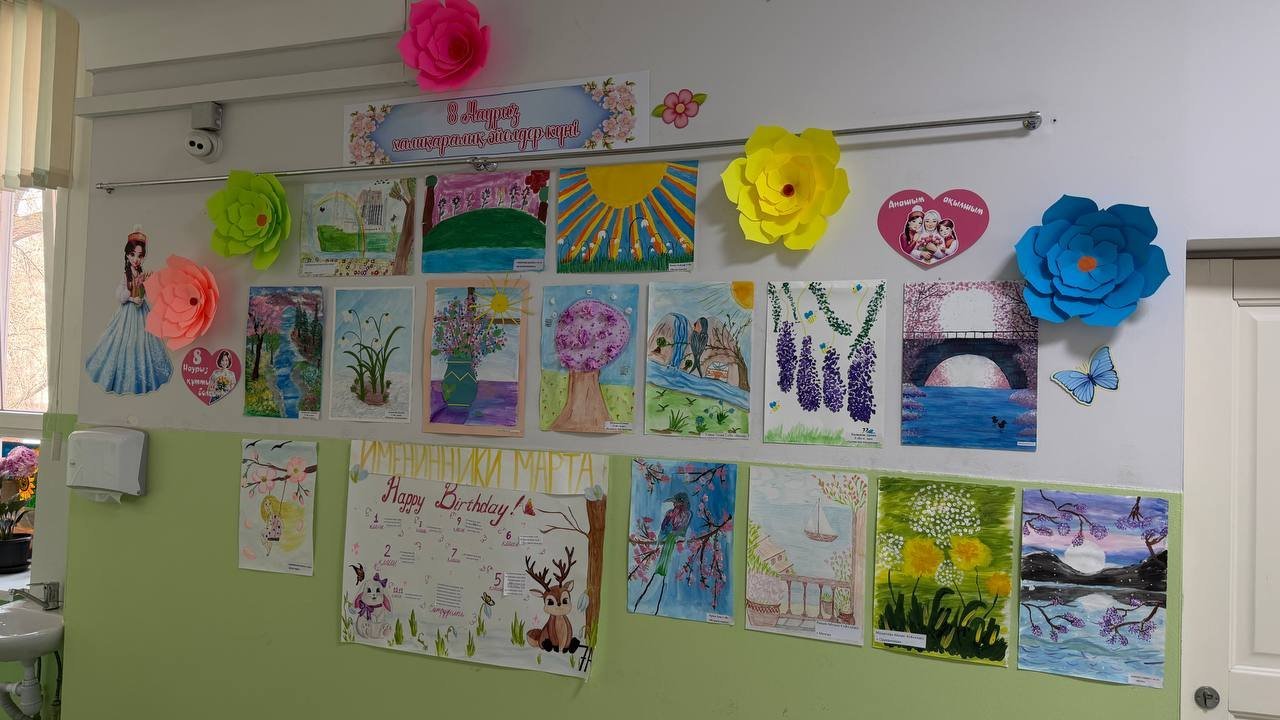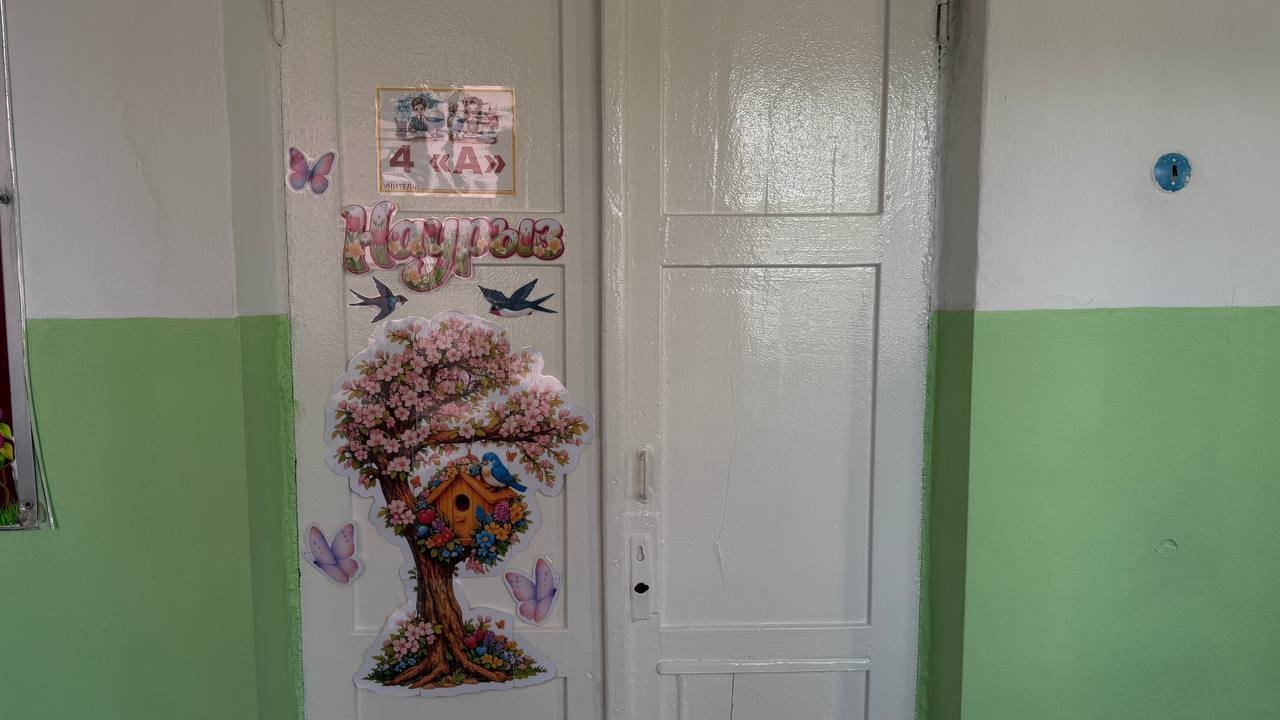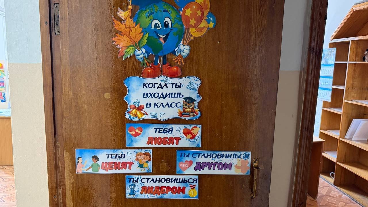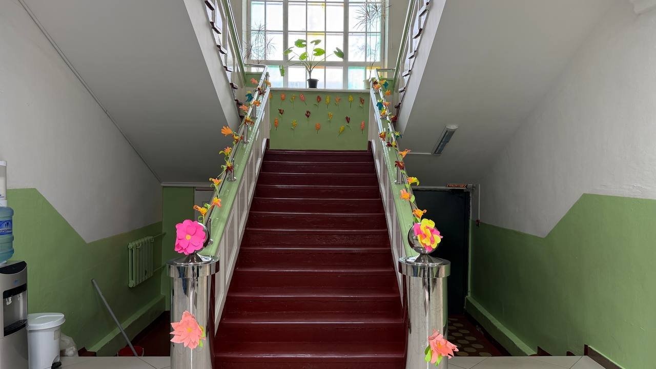 Лестница тоже оформлена детскими работами в виде цветов, на входной двери висят бантики, а творчество школьников можно увидеть даже на подоконниках. Классы здесь небольшие, но внутри чувствуется спокойная и доброжелательная атмосфера. Сейчас в школе учатся уже дети первых выпускников.