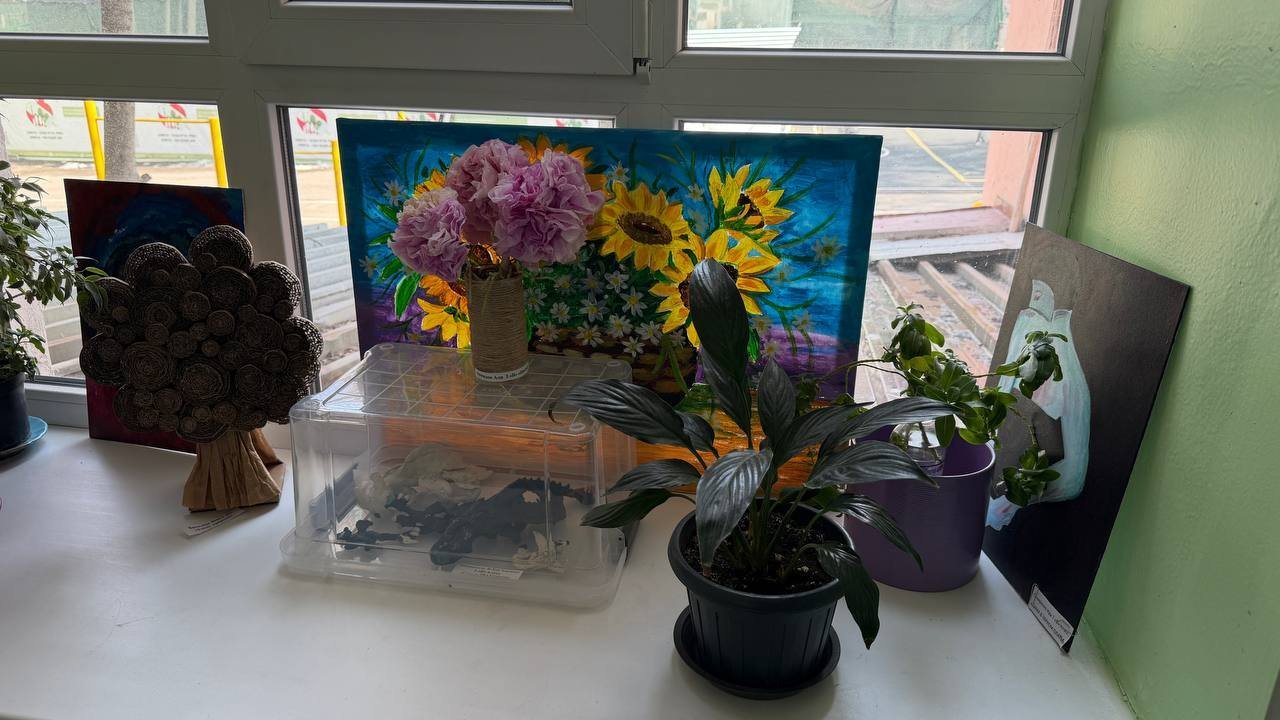 Она небольшая и очень уютная: всего два этажа, спокойная обстановка и заметно тёплая, почти домашняя атмосфера. На подоконниках много зелени. Первый этаж, где учатся младшие классы, украшен детскими поделками и рисунками. На одной из стен висят работы учеников. По словам Ольги Константиновны, дети часто подбегают туда вместе с друзьями, чтобы показать свои рисунки, и начинают обсуждать их.