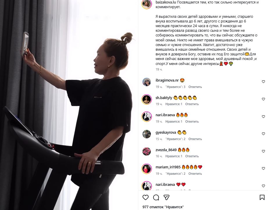 Мама казахстанской блогерши Айжан Байзаковой опубликовала пост в соцсети, в котором прокомментировала чрезмерное внимание к ее семье со стороны подписчиков и СМИ, передает Liter.kz.
