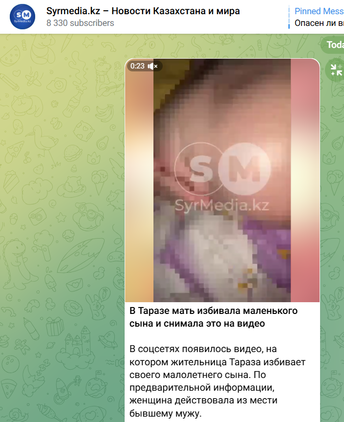На кадрах, опубликованных в Telegram-канале Syrmedia.kz видно, как она наносит удары ребенку, светит ему фонариком в глаза и приказывает старшей дочери присоединиться к избиению. Мальчик плачет и не понимает причин наказания.