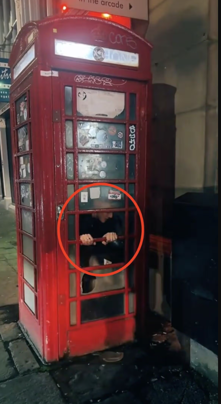 По данным очевидцев, мужчина зашел в красную телефонную будку, рассчитывая воспользоваться аппаратом, чтобы заказать еду. Однако внутри он обнаружил, что телефона там уже нет. Когда он попытался выйти, тяжелая дверь захлопнулась, и выбраться самостоятельно он не смог.
