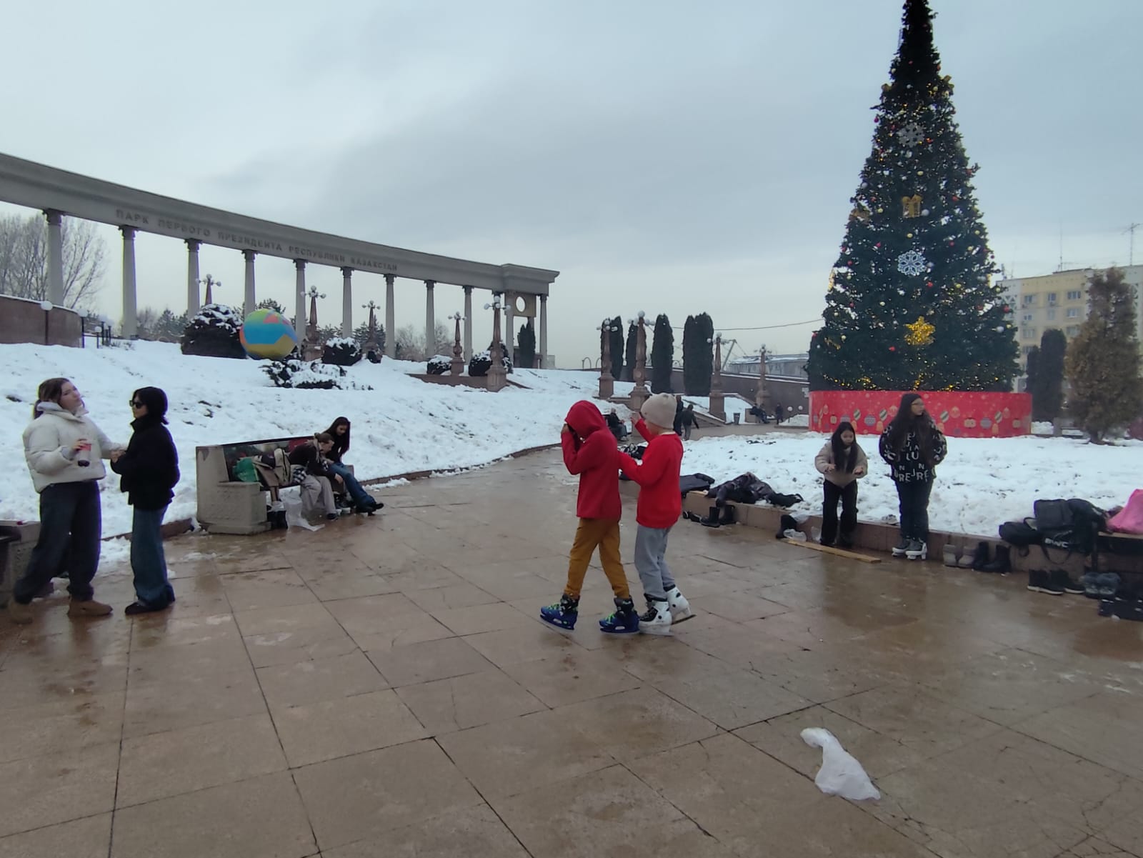 На катке, расположенном у центрального входа в Парк первого президента, в любой день собираются внушительные толпы посетителей. Нередко сюда приезжают покататься на коньках жители других районов города.